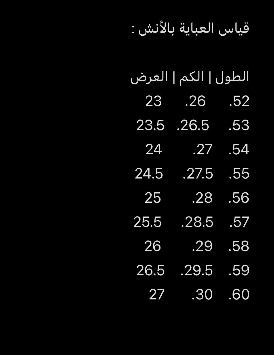 ولكن اذا اختيارك قماش شبه واقف ينصح باختيار نفس القياس ٥٦ وهكذا ( لأن القماش الطايح اذا كان العرض واسع يزيد من طول العبايه )